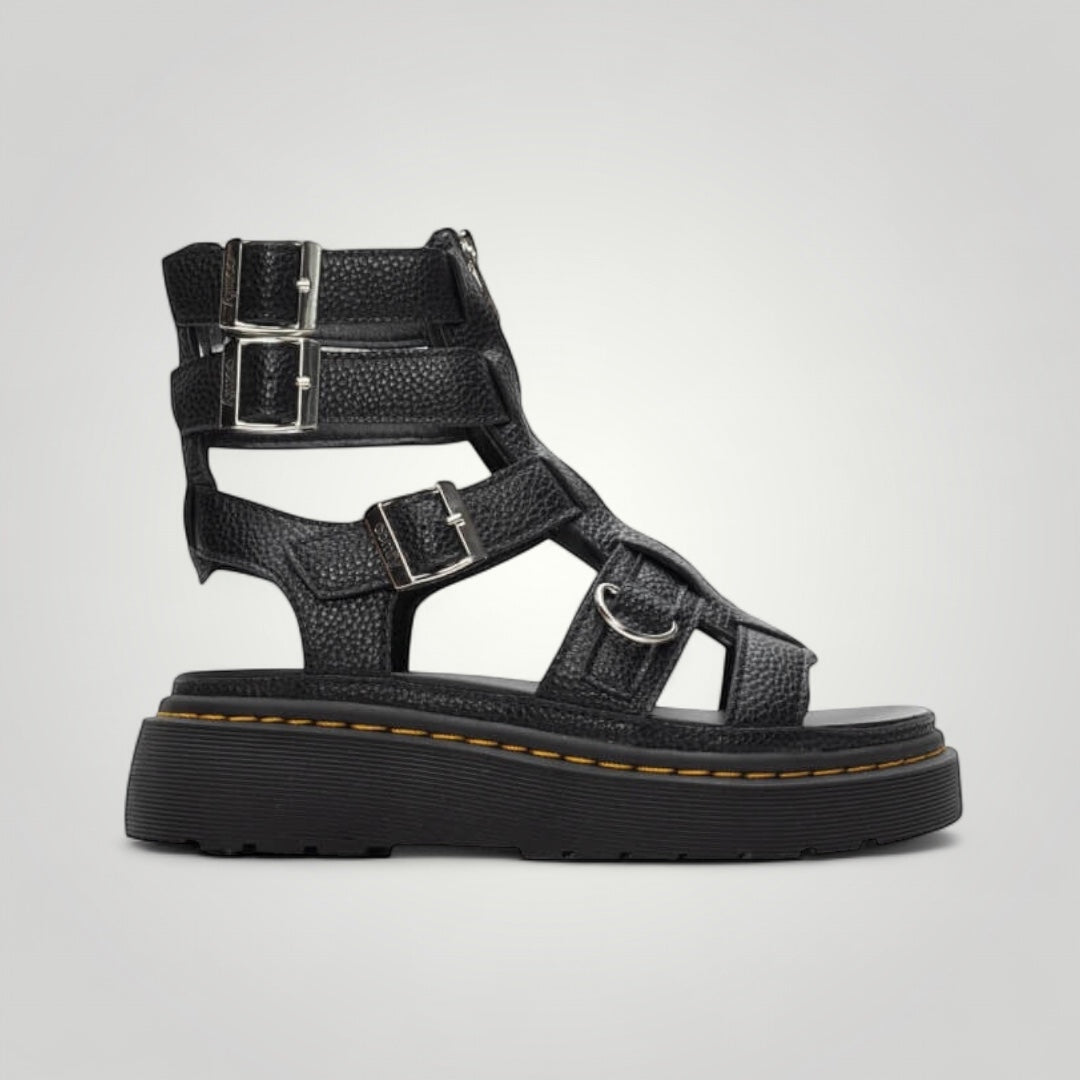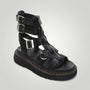 Il punto di forza, oltre al design, è la comodità di questi sandali. Con design gladiatore, includono molteplici cinturini con fibbie metalliche regolabili e una chiusura frontale con cerniera per una calzata sicura e pratica. Il ricamo giallo aggiunge un dettaglio distintivo e moderno, ideale per chi cerca di distinguersi con un look audace e cool.