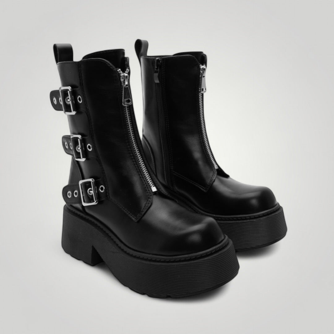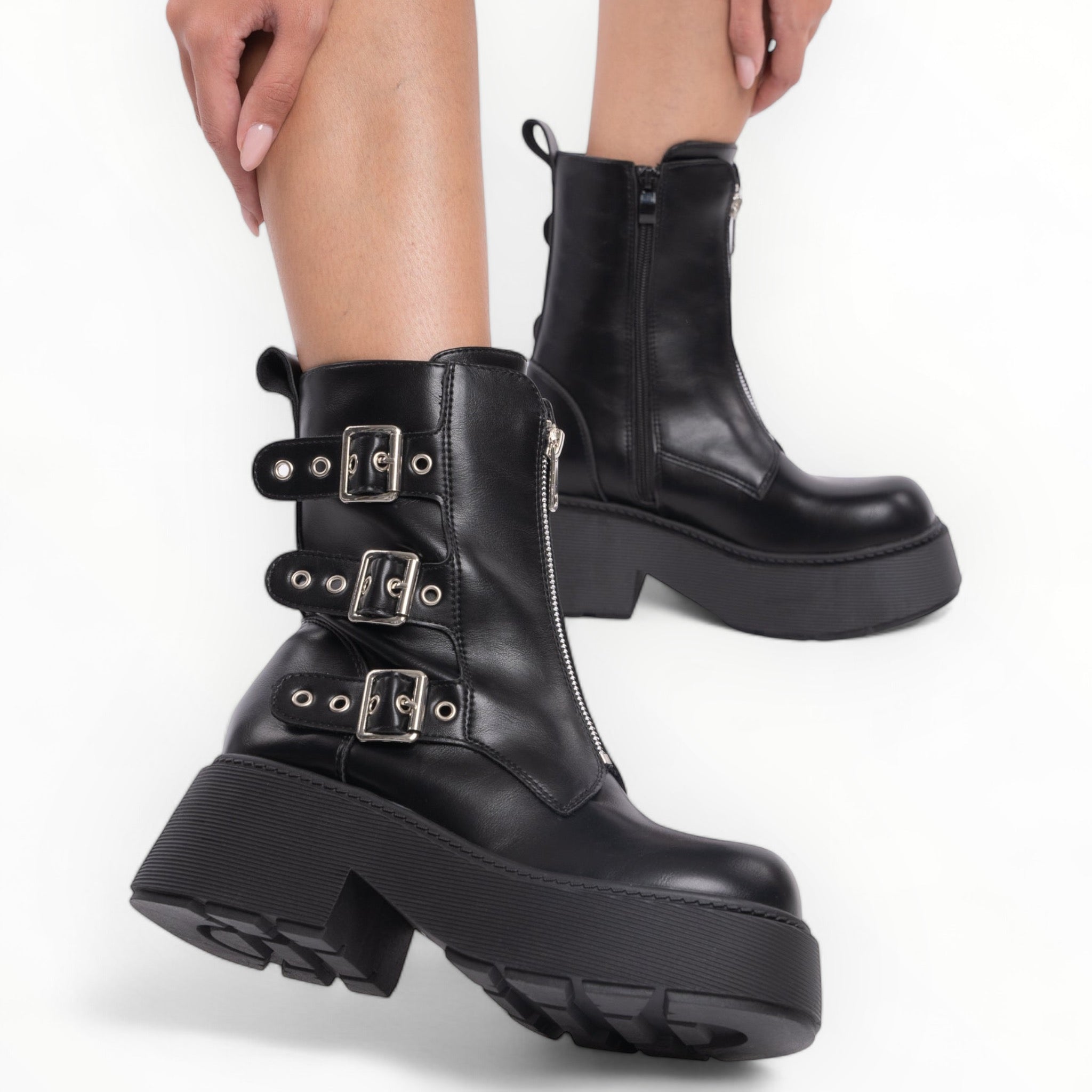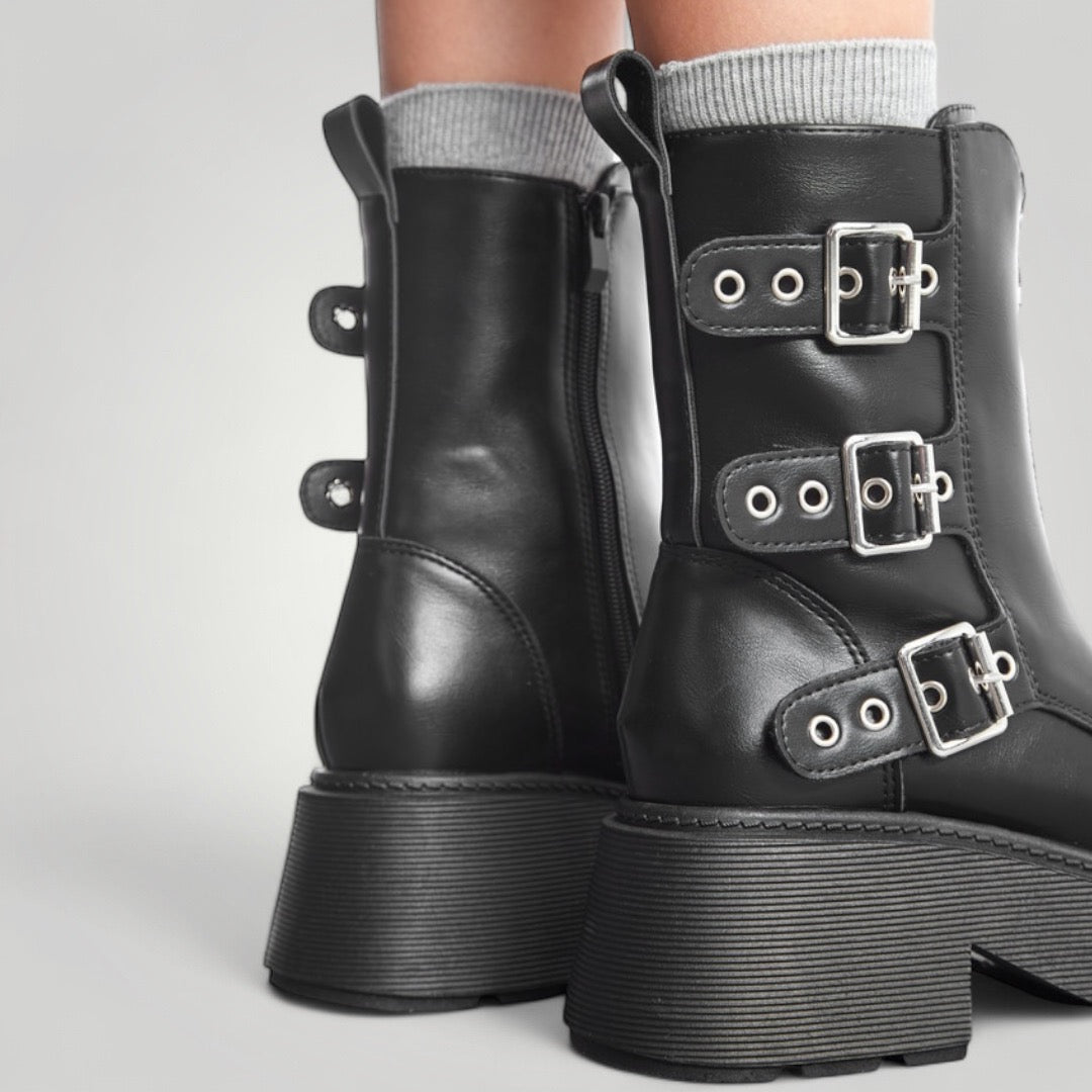 Gli stivaletti Sicilia Biker sono un must-have del tuo guardaroba per questa stagione. Con il loro stile biker e la doppia cerniera frontale e laterale, questi stivaletti ti donano un look alla moda e confortevole. Inoltre, le tre fibbie laterali aggiungono un tocco extra di stile. Leggeri e comodi, sono ideali per ogni occasione. Falli tuoi subito! Realizzati in ecopelle di alta qualità.