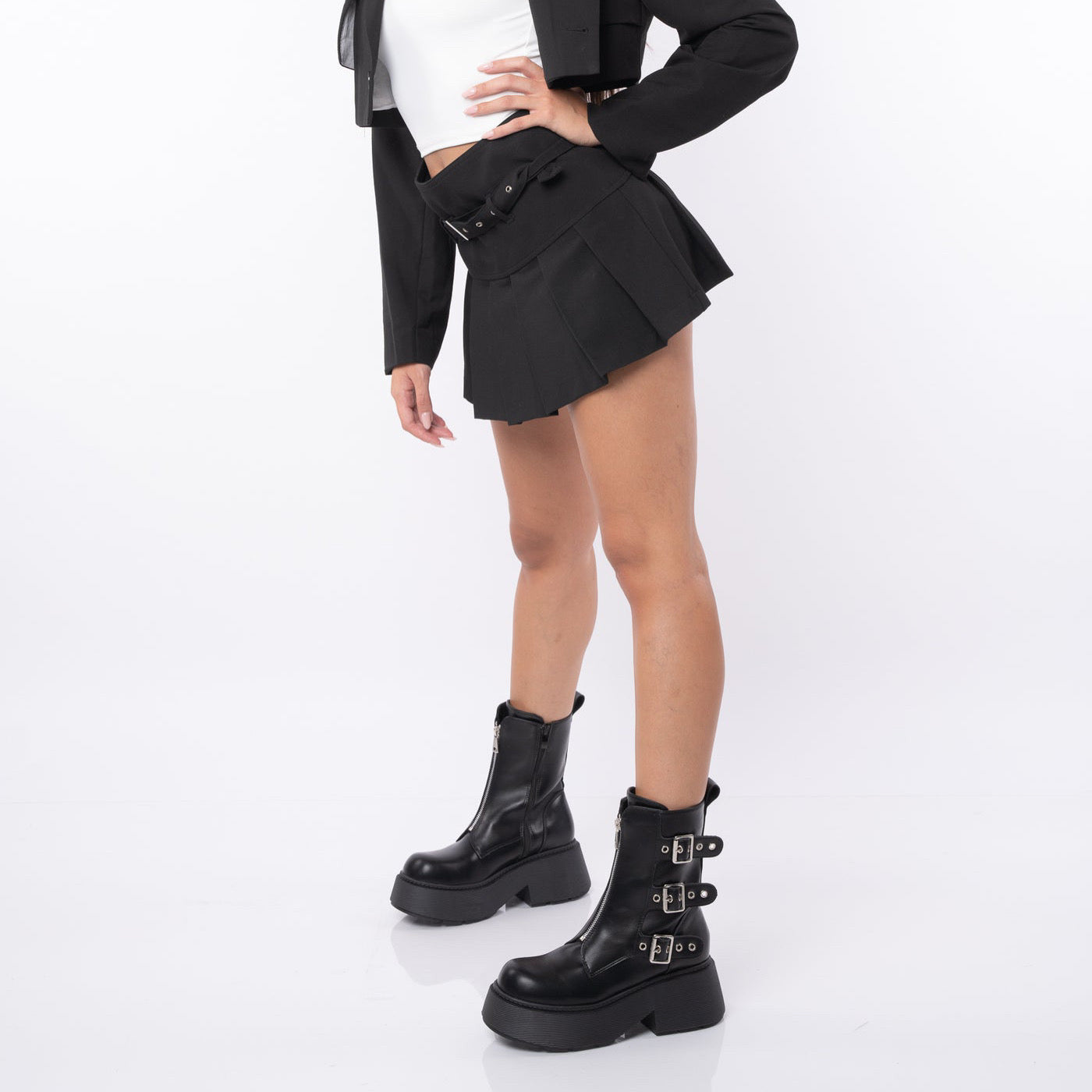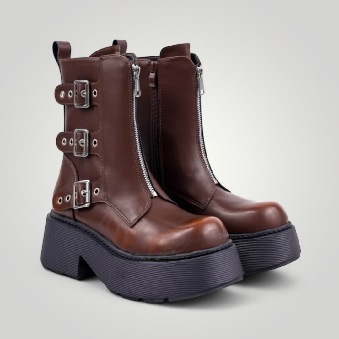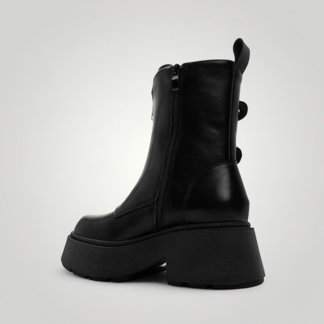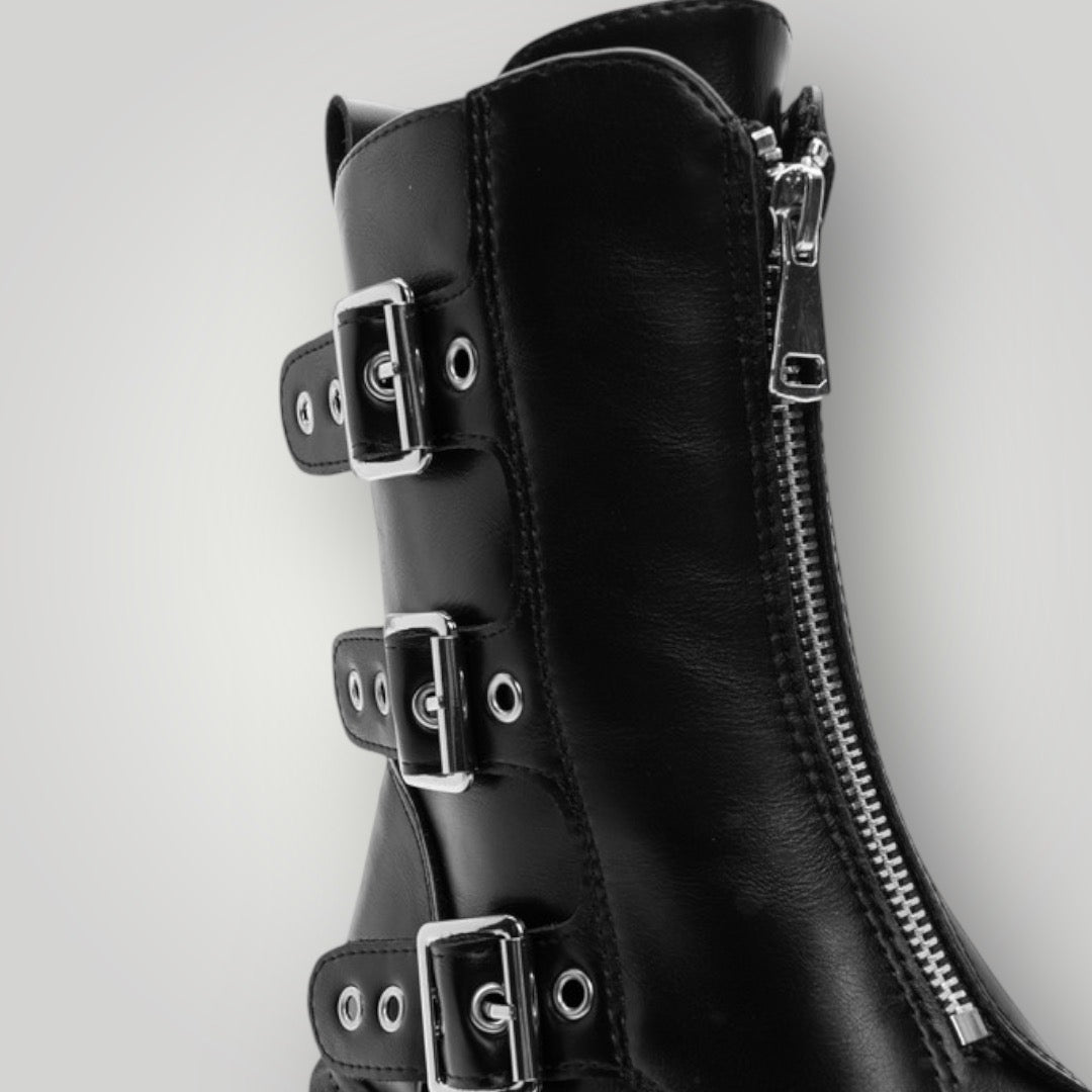 Gli stivaletti Sicilia Biker sono un must-have del tuo guardaroba per questa stagione. Con il loro stile biker e la doppia cerniera frontale e laterale, questi stivaletti ti donano un look alla moda e confortevole. Inoltre, le tre fibbie laterali aggiungono un tocco extra di stile. Leggeri e comodi, sono ideali per ogni occasione. Falli tuoi subito! Realizzati in ecopelle di alta qualità.