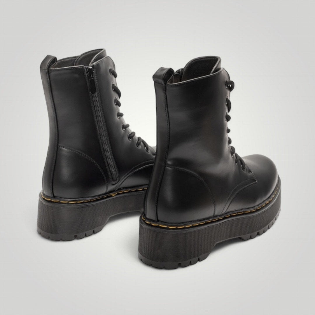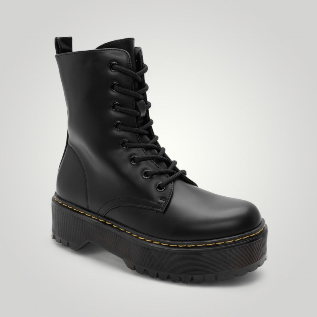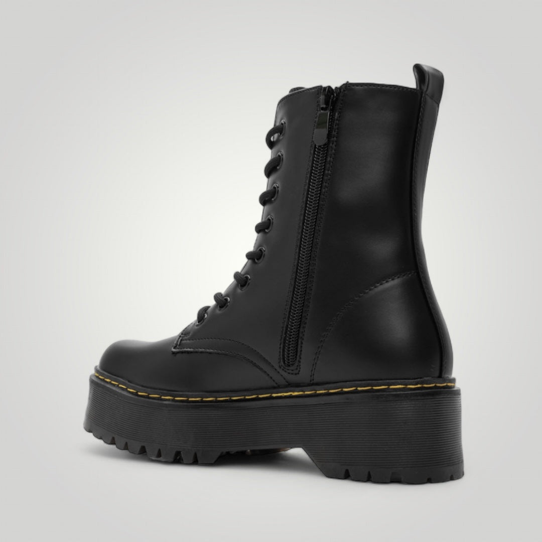 De perfecte combinatie om deze seizoen te stralen. Ontworpen met veters, een zijrits en een platform voor een verfijnde look, de dikke zool met platform voegt hoogte toe zonder in te boeten op comfort, terwijl de gevoerde binnenkant en de antislipzool zorgen voor comfort en veiligheid. Laat ze niet aan je voorbijgaan, deze laarzen zijn nooit uit de mode! Gemaakt van hoogwaardig kunstleer.