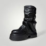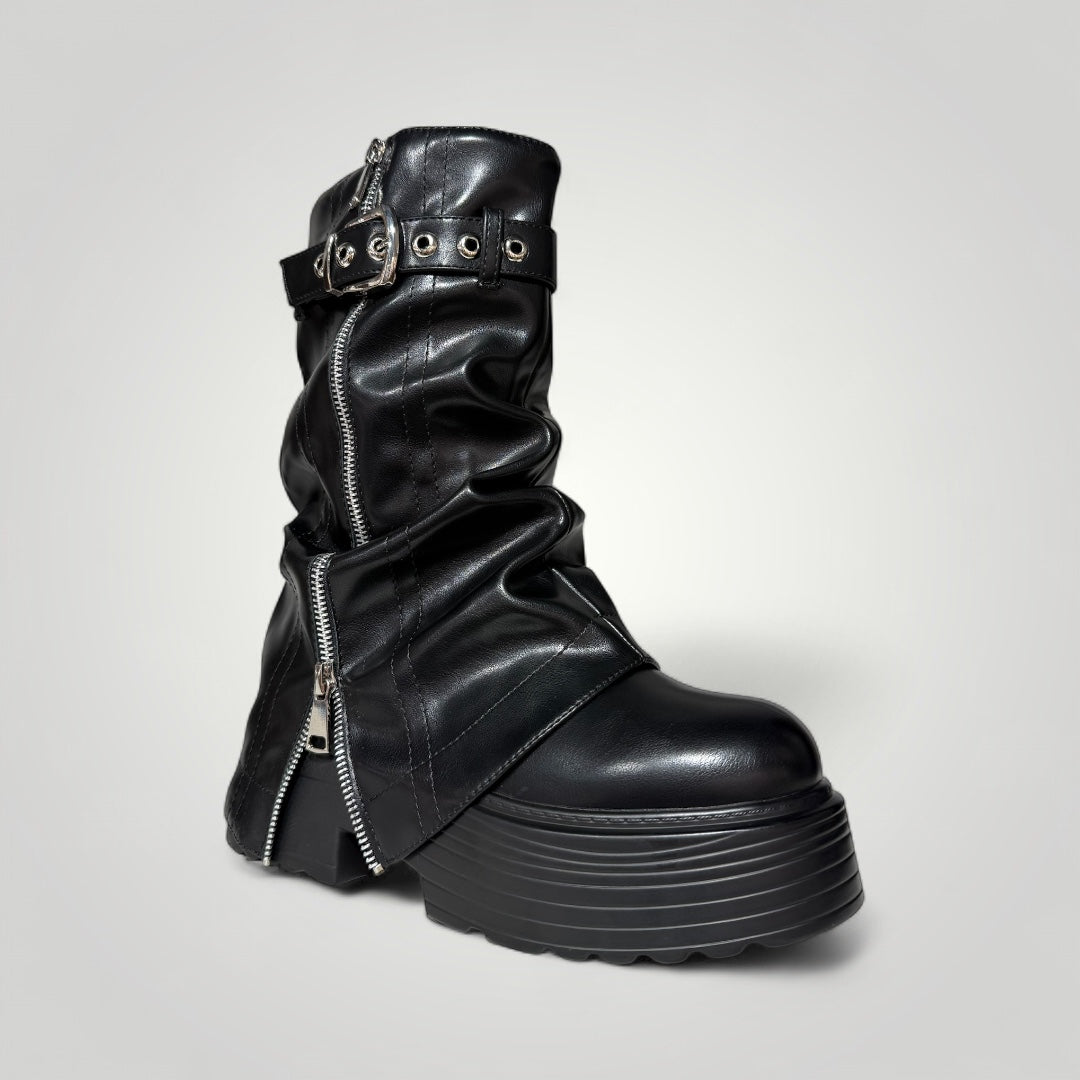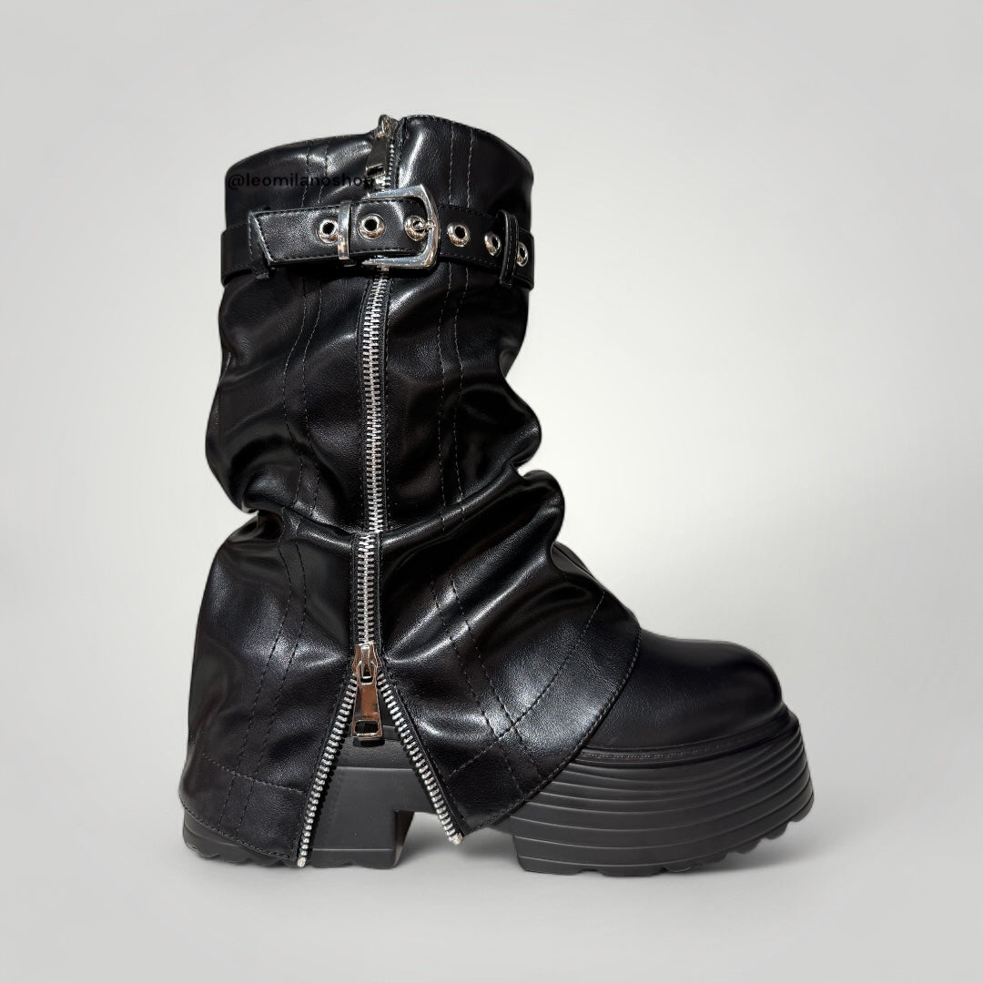 Botas con funda estilo polaina, cremallera interior y ajuste de hebilla. Muy cómodas y ligeras. Confeccionadas en polipiel de alta calidad. Tendencia máxima de esta temporada.
