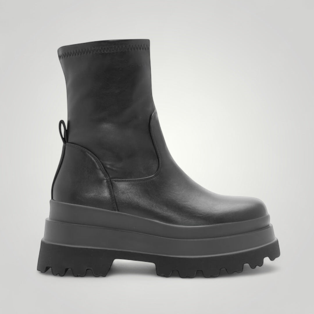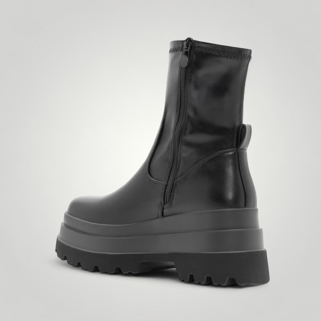 Botines con plataforma, triple suela, cremallera lateral, muy cómodos y ligeros. Confeccionados en polipiel de alta calidad.