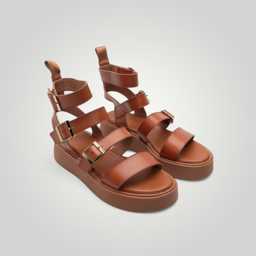 Descubra o conforto e o estilo da nossa Roma. Com design de estilo romano, alça tripla ajustável e tornozeleira com fivela, proporcionam um ajuste perfeito. Além disso, o seu acolchoamento e leveza tornam-nos perfeitos para caminhar o dia todo sem se cansar. Tendência desta estação. Não perca a oportunidade de tê-los na sua coleção!