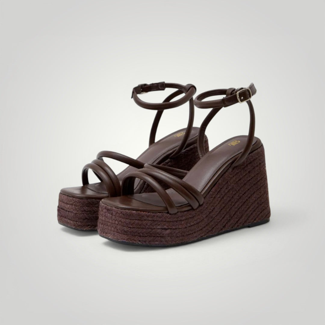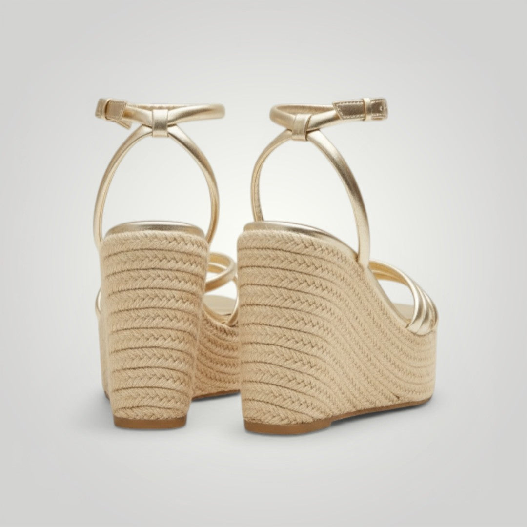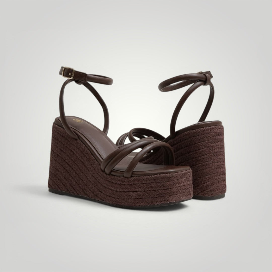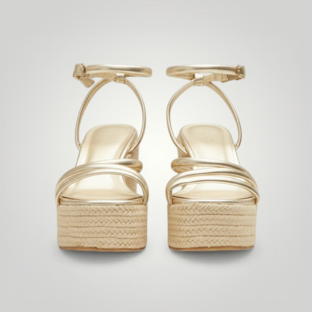 As sandálias Domenica têm um design único e elegante graças à sua cunha e tiras. Além disso, a sua pulseira de tornozelo ajustável com fivela proporciona conforto e estilo. São fabricadas com uma palmilha acolchoada para oferecer maior conforto aos seus pés. Desfrute de um look sofisticado e confortável com estas sandálias!